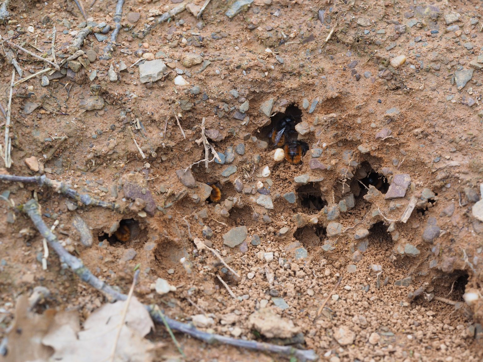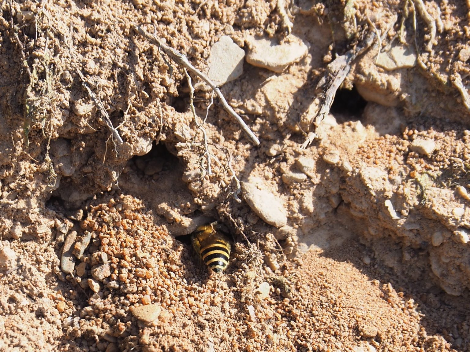 Die meisten unserer heimischen Wildbienenarten nisten in der Erde. Und auch hier stellt jede dieser Arten eigene Ansprüche an die Gegebenheiten. Auch die Vorlieben, wie das Nest gebaut ist, varieren stark. Einige Arten bevorzugen locker sandigen Boden und bauen in die Tiefe. Andere Wildbienen graben sich waagerecht in lehmige Wände. Das sind nur zwei von vielen Möglichkeiten.