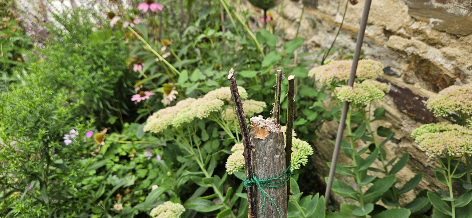 Um diese Wildbienenarten zu unterstützen, bindet man etwa 30 cm lange Stücke dieser Pflanzen senkrecht an einen Zaun, Pfahl, Stock oder an das Balkongeländer. Da die Wildbiene im natürlichen Lebensraum solche Nistmöglichkeiten auch nur einzeln vorfindet, sollten die Stängel nicht gebündelt werden. Einzelne oder nur wenige Stücke locker zusammengebunden werden gerne besiedelt.