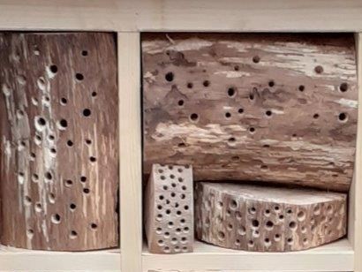 Im natürlichen Lebensraum suchen sich einige Wildbienenarten verlassene Fraßgänge von Käferlarven in Totholz, die als Nistraum zur Anlage der Brutzellen benutzt werden. Wenn wir uns an diesen natürlichen Vorgaben orientieren, kommen die Wildbienen garantiert gerne.
